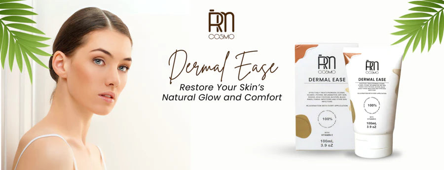 RM Cosmo Cream effectively treats various skin conditions such as psoriasis, eczema, scabies, itching, inflammation, dry skin, rashes, scaly patches, blisters, and other skin infections. Psoriasis is a chronic disease where the immune system becomes overactive, causing skin cells to multiply rapidly, often affecting areas like the scalp, elbows, knees, and underarms. Eczema is a group of inflammatory skin conditions that lead to itchiness, dryness, and rashes. Scabies is a parasitic infection caused by tiny mites that burrow into the skin and lay eggs, resulting in intense itching and redness.
